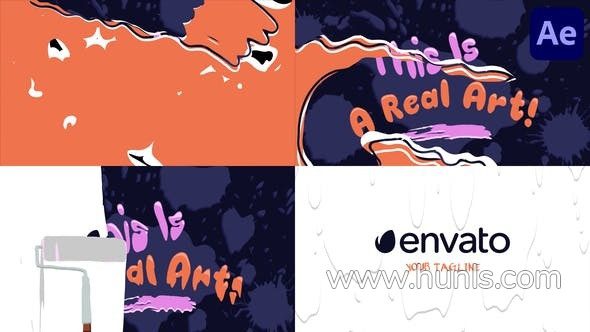 活力画笔艺术效果卡通手绘液体油漆涂抹动画LOGO片头AE模版 Videohive Painting Logo for After Effects