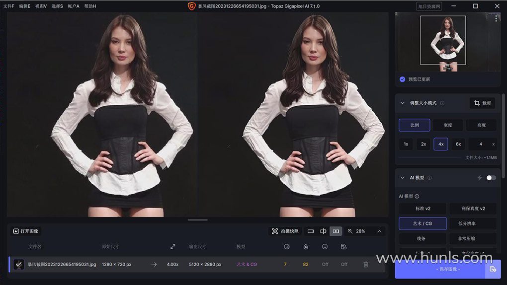 Topaz Gigapixel AI v7.1.0 是一款专业的人工智能图像放大软件,得益于AI人工智能算法,这款图片无损放大软件可以在放大图片的同时运用AI人工智能算法模型计算图片缺失部分,自动修补图像损失的细节,让画质效果最佳。