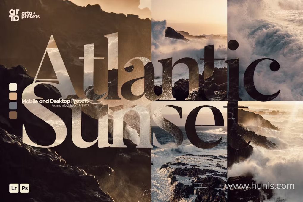4款大气海滩海浪日落电影风光复古摄影调色Lightroom预设 ARTA – Atlantic Sunset for Lightroom