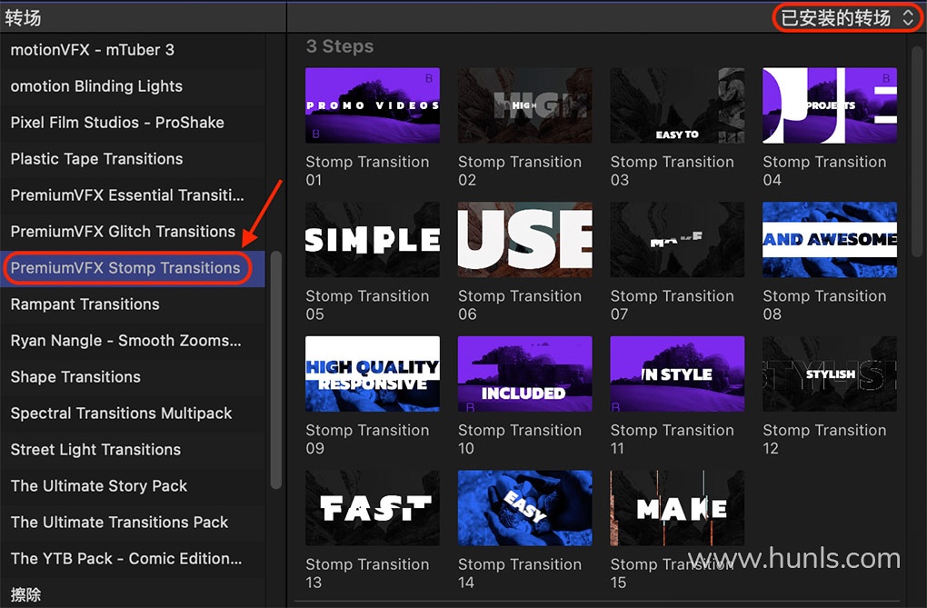 40种活力动感文字标题动画效果转场预设FCPX插件 PremiumVFX – Stomp Transitions