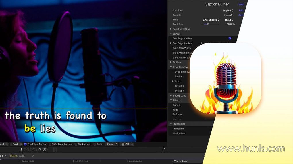 MV音乐歌词字幕加载导入工具FCPX/AE/PR插件 Caption Burner