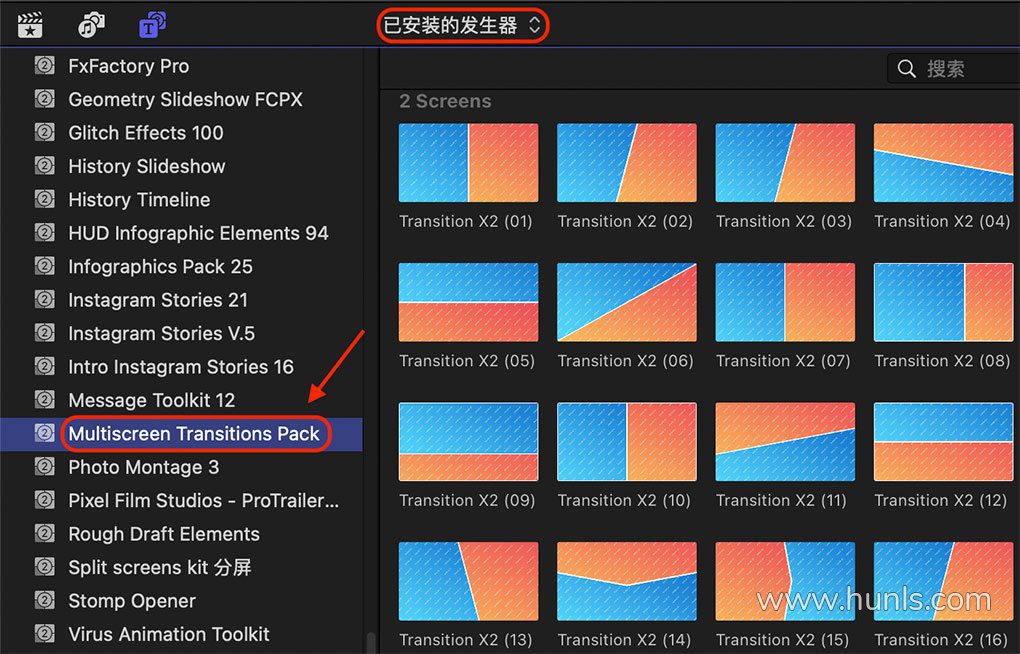 84个创意动态分屏展示转场过渡效果预设FCPX插件 Multiscreen Transitions Pack