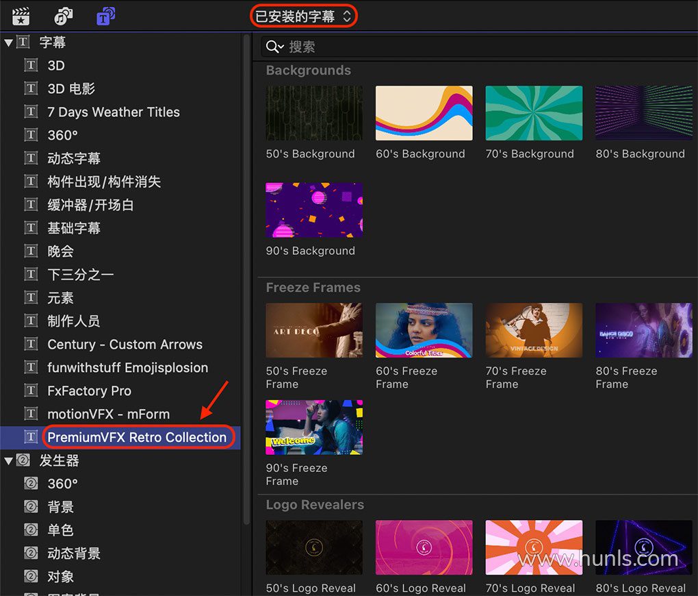 60种复古80年代徽标Logo排版标题字幕图形背景静帧叠加动画FCPX插件 PremiumVFX – Retro Collection汉化版