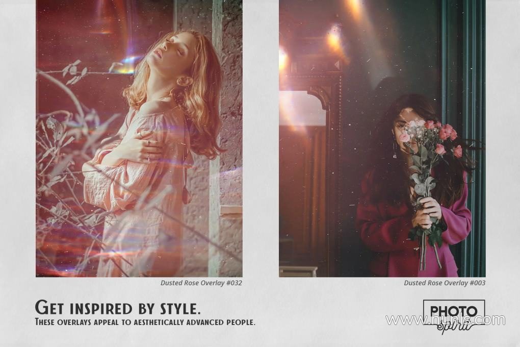 40张优美复古玫瑰粉金尘埃粒子艺术设计照片叠加图片素材 Dusted Rose Overlays
