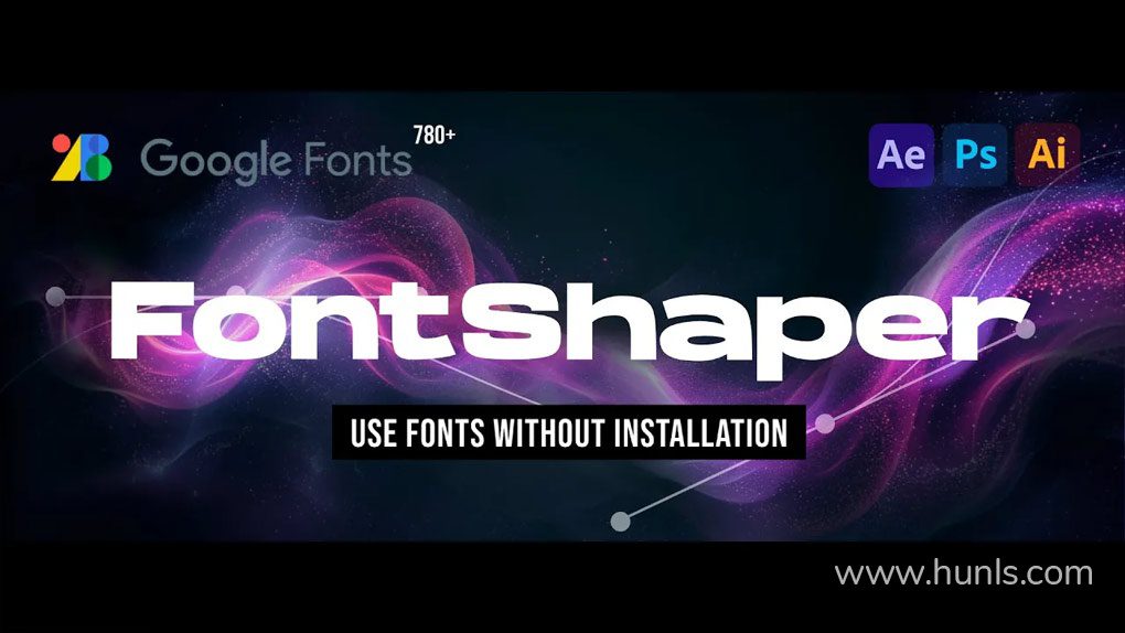 使用FontShaper 脚本在Adobe软件应用程序中直接使用谷歌字体。使用超过 780 种 Google 字体 (需要 Api 密钥👉申请地址) 或 本地文件夹中的任何字体创建文本, 无需安装本地字体,并作为矢量形状直接导入 Photoshop (SVG) 、 After Effects (形状) 和 Illustrator (svg)。