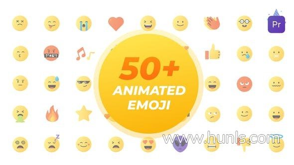 50 多个动画图标Emoji卡通表情符号-PR模板 Emoji