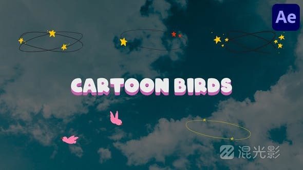 有趣的盘旋卡通星星和鸟类手绘动画喜剧效果元素-AE模板 Circling Cartoon Birds for After Effects