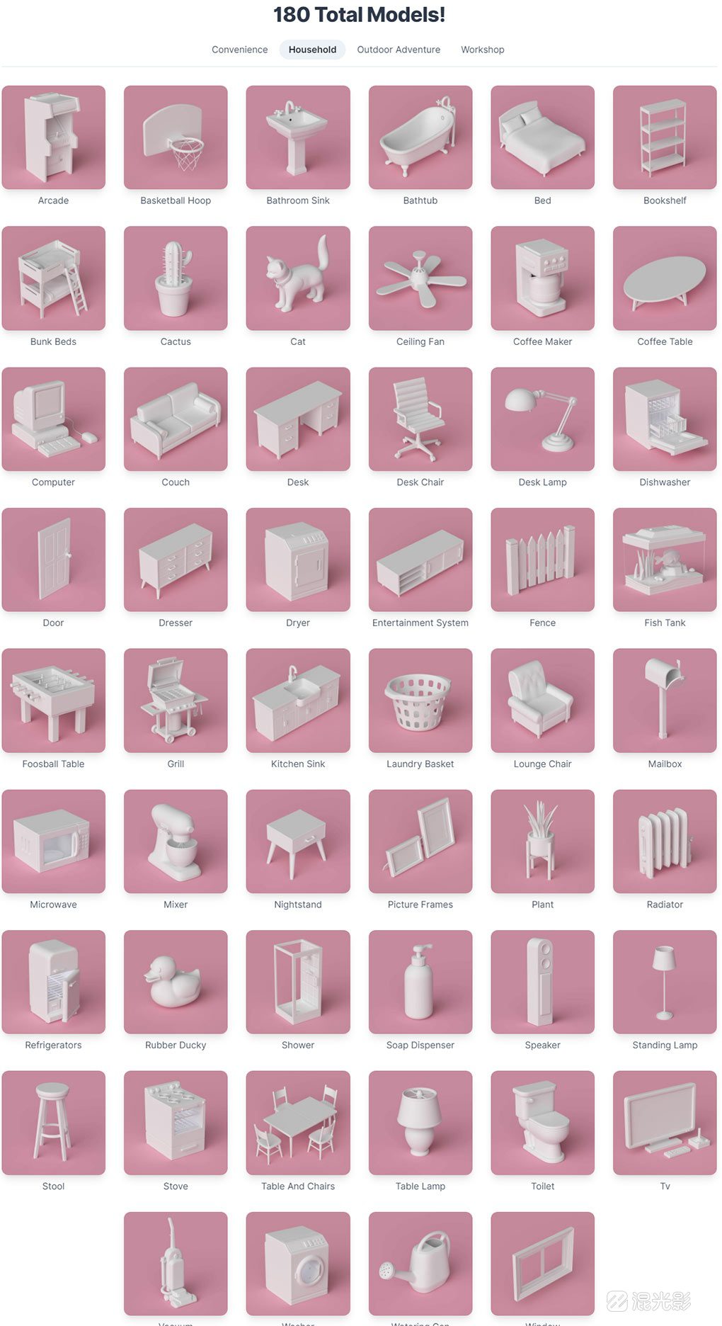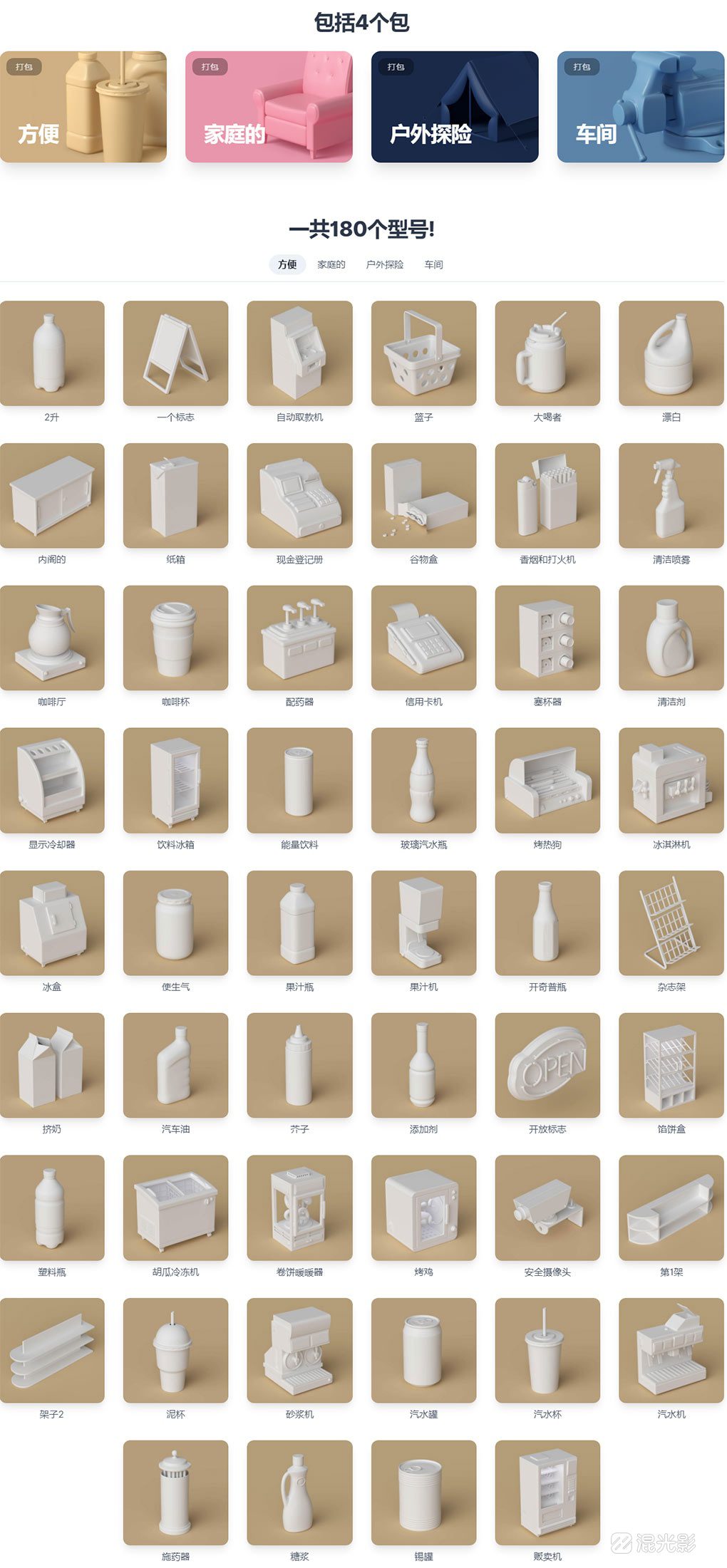 第2卷包括:生活用品、家居物品、户外探险包和工具等3D模型。