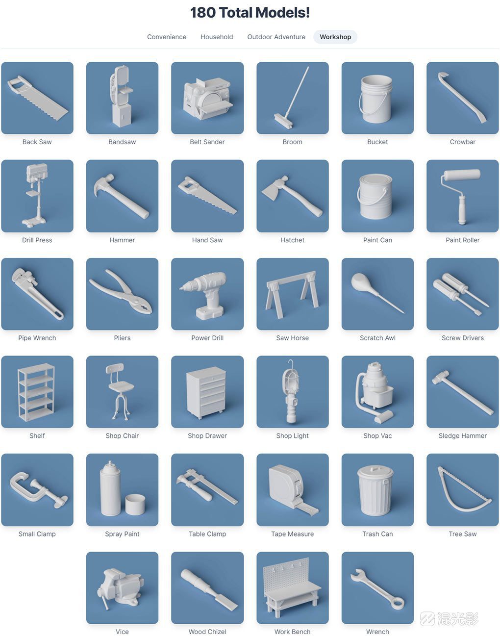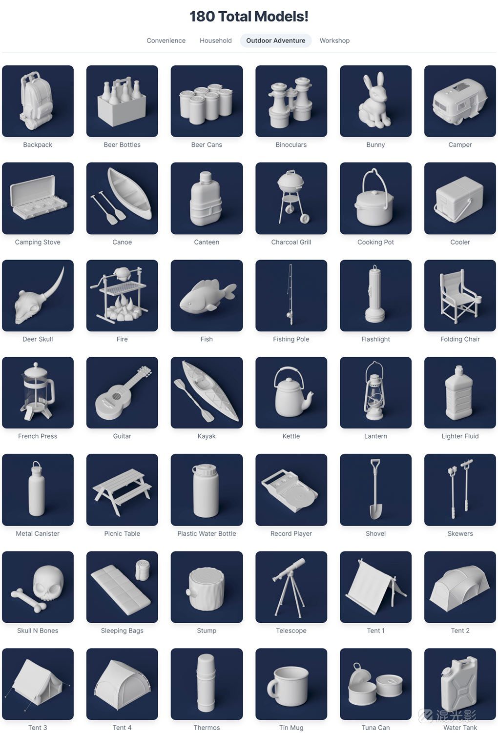 180个3D模型第2卷包括生活用品家居物品户外探险包和工具 Happy Toolbox Model Pack Volume 2