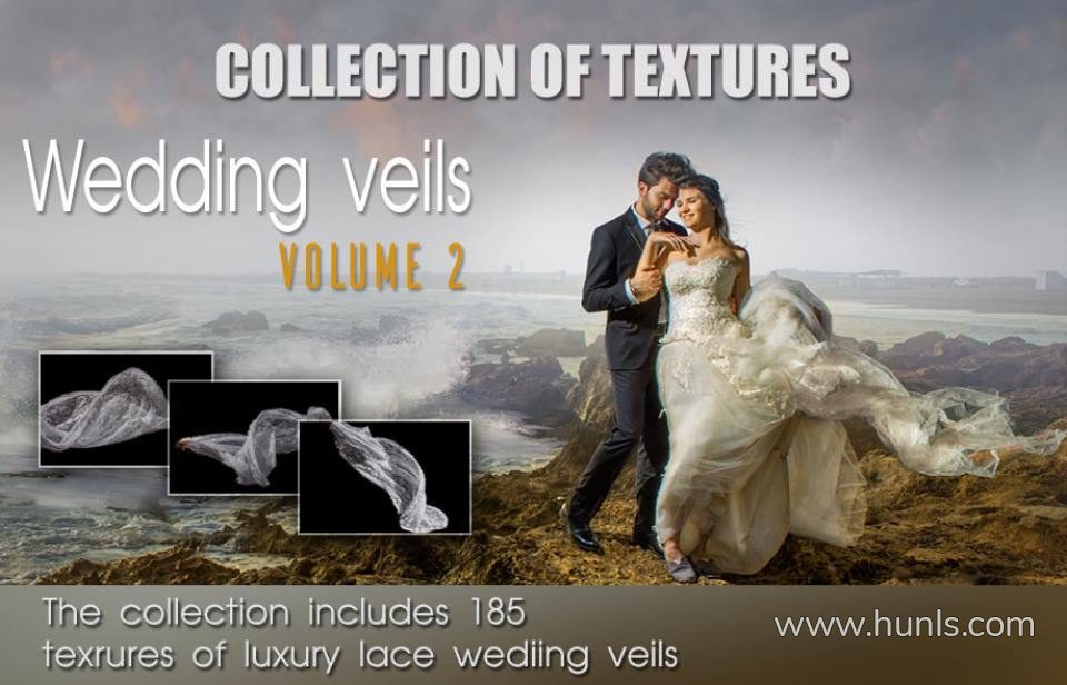 摄影师 Dmitry Usanin 185张蕾丝婚纱拖尾飘纱裙摆PSD素材第二卷 Collection of textures: Luxury lace wedding veils. VOL 2