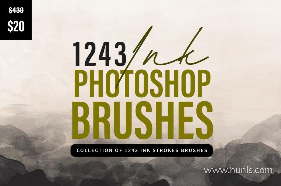 1240+中国风水墨画水墨笔触ps笔刷包 1243 Ink Stroke Brushes for Photoshop
