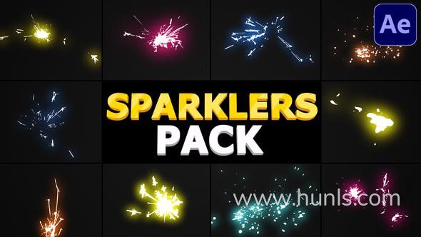 AE脚本预设包-10个卡通烟火元素烟花炮竹火花烟火闪火苗动画 Sparklers Pack FXM预设