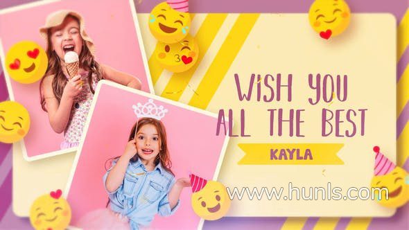 AE模板PR模板 表情符号动画场景可爱生日快乐照片相册视频 PR与AE工程文件