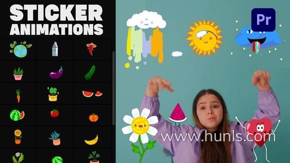 PR模板 25种手绘卡通动画芦荟香蕉仙人掌胡萝卜洋甘菊黄瓜茄子花水果牛奶蔬菜西瓜 PR工程 PR源文件