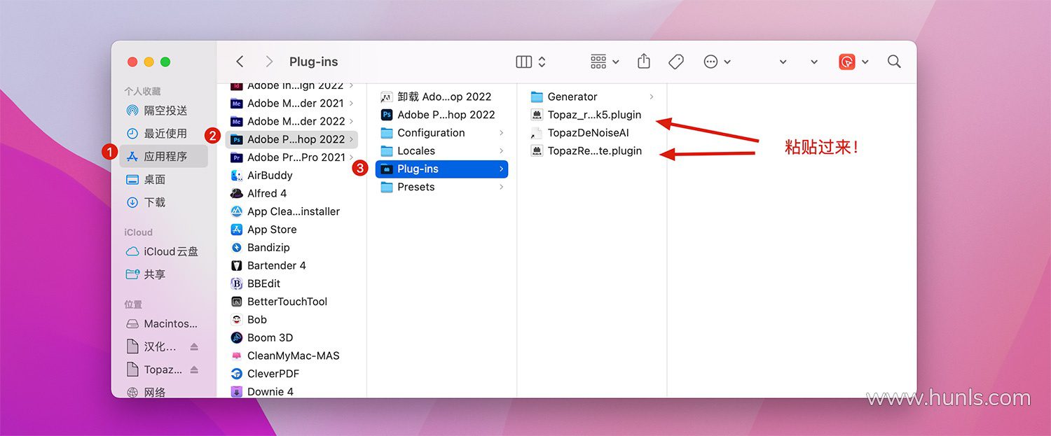 Plug-ins文件夹路径:Applications/Adobe Photoshop /Plug-ins