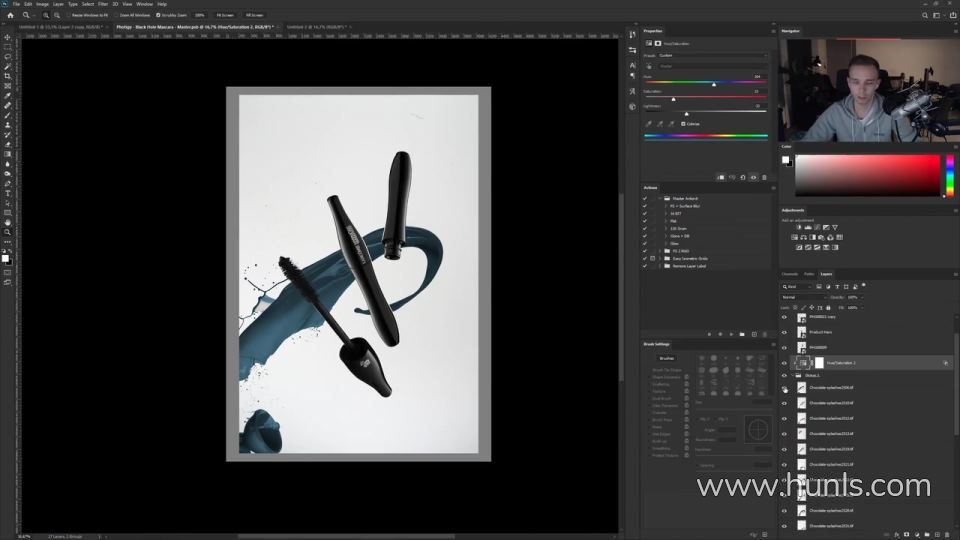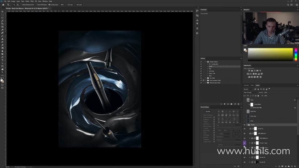 在这个高级化妆品工作坊中,您将学习如何创建一个引人注目的产品图像,其中包含一支被黑色液体飞溅漩涡包围的有光泽的睫毛膏笔。