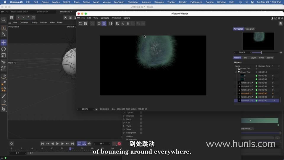 本教程是关于Cinema 4D音乐视频动画实例制作视频教程 中文字幕,时长:1小时17分,大小:700 MB,MP4高清视频格式,教程使用软件:Cinema 4D,作者:Pete Maric,共16个章节,语言:中英双语字幕。