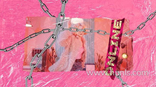 FCPX插件链条粉红色贴纸照片动画视频片头制作模板 Pink Promo
