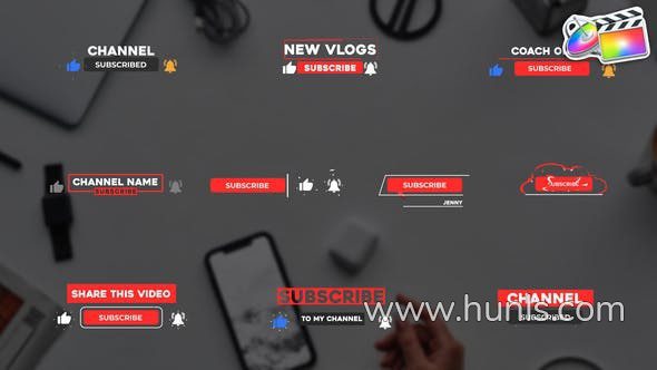 FCPX插件-10组社交媒体视频平台订阅按钮字幕条动画 Youtube Subscribe Buttons FCPX