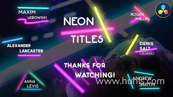 达芬奇模板-酷炫霓虹灯标题演职员表奖项信息电影游戏预告片视频文字动画 Neon Lights Titles DaVinci Resolve
