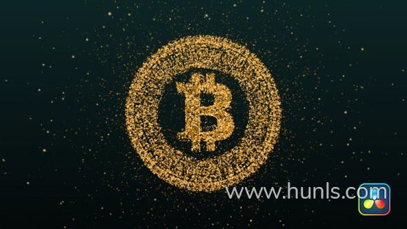 达芬奇DR模板-小圆点粒子汇聚比特币加密货币标志揭晓技术LOGO动画 Bitcoin Cryptocurrency Logo Reveal