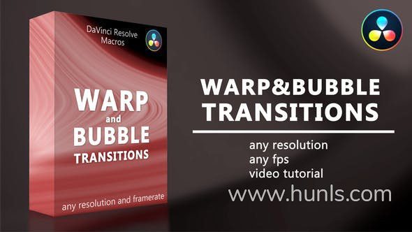 达芬奇预设-19种鱼眼效果变形旋转扭曲缩放模糊气泡过渡动态转场 Warp & Bubble Transitions for DaVinci Resolve