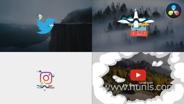 达芬奇模板-卡通行李旅行元素多彩动画标志片头 Travel Logo for DaVinci Resolve