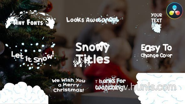 达芬奇模板-很酷的卡通雪冬风格文字动画标题用于下雪主题镜头有趣冬季派对视频 Snowy Titles DaVinci Resolve