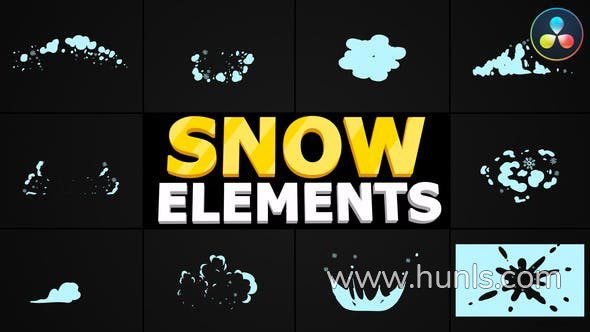 达芬奇模板-看起来很酷的卡通手绘雪元素制作小视频雪花雪球图形动画 Snow Blasts DaVinci Resolve