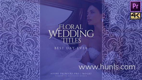 PR优雅婚礼标题模板浪漫开场白邀请函花纹设计动画 Wedding Titles Floral Pack