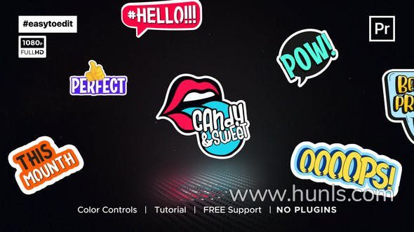 PR模板 卡通字幕动画贴纸标题animoji气泡文本包 Animated Stickers Pack