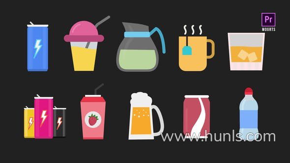 PR模板-10个饮料动画图标能量饮料奶昔果汁茶等 Drinks Animated Icons