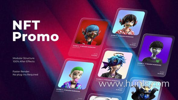 PR模板-卡片式照片动画展示数字艺术作品宣传视频 NFT Promo Mogrt