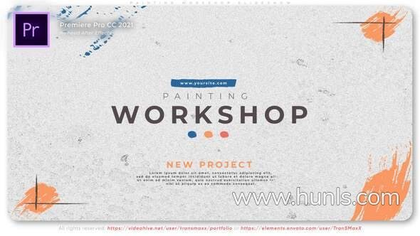 PR模板-画笔笔触过渡墨水动画标题制作回忆电影录像纪录片历史开场白 Painting Workshop Slideshow