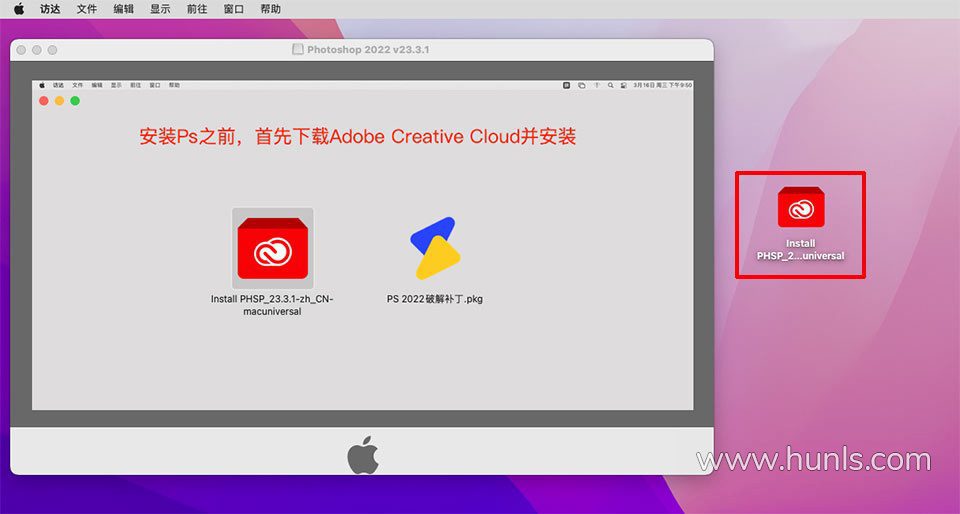 M1电脑请直接安装【 Creative Cloud】下载正版,然后在替换补丁 https://www.hunls.com/18778.html