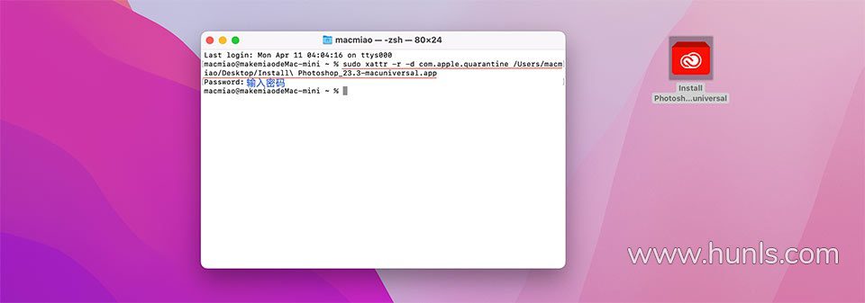 sudo xattr -r -d com.apple.quarantine /Applications/Install\ PHSP_23.2.1-zh_CN-macuniversal.app