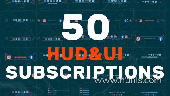 PR模板-50 HUD UI Subscriptions全息技术标题科技字幕