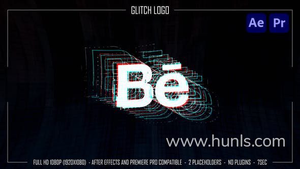 AE与PR模板-适合纵向与横向屏幕故障标志动画抖音朋友圈宣传片头 Glitch Logo