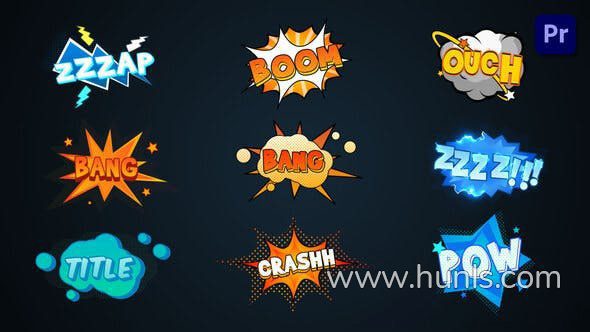 PR模板-漫画爆炸标题卡通多彩泡泡贴纸文字动画 Comic Explosion Titles Premiere Pro