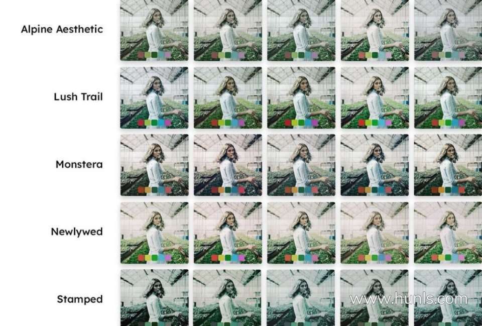 这些预设最适合包含绿色的照片,例如远足照片、户外时尚照片和风景照片。