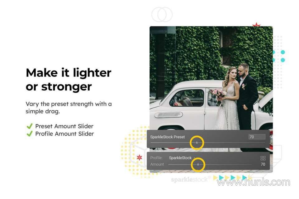 这些预设由 SparkleStock 制作,并按照最佳标准构建,具有肤色保护和支持 Lightroom 数量滑块等功能。当您使用这些兼容的预设时,会出现数量滑块。它可以让您将预设淡化到完美的强度。