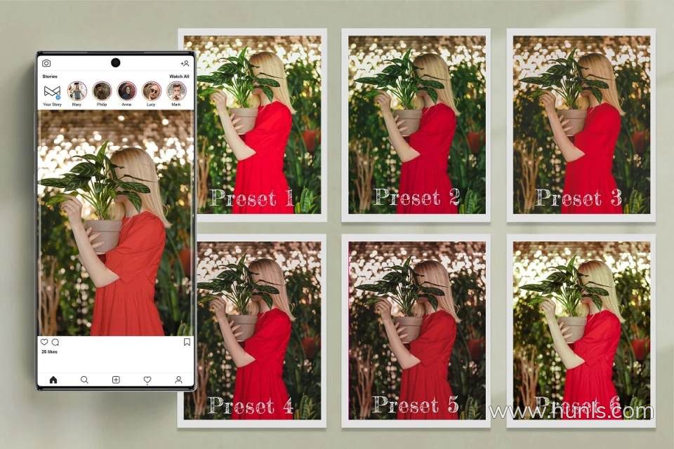 这些摄影预设专为红色和沼泽绿色、深色、白色和棕色的照片而设计。