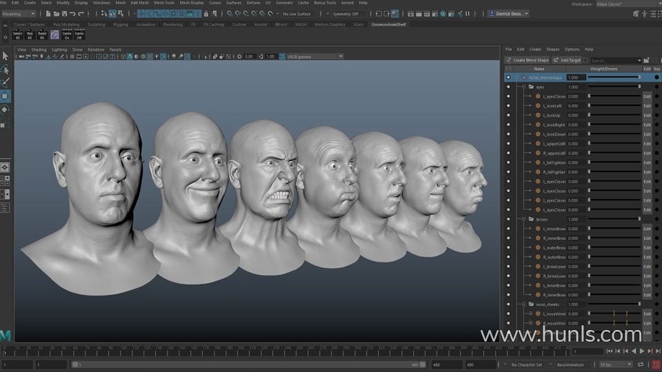 与Derrick Sesson一起使用Maya和ZBrush制作FACS混合面部造型的完整指南课程。