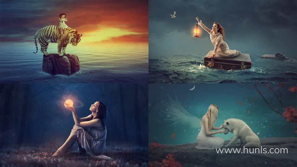 Making Fantasy Girl & Wolf Manipulation scene Effects In Photoshop