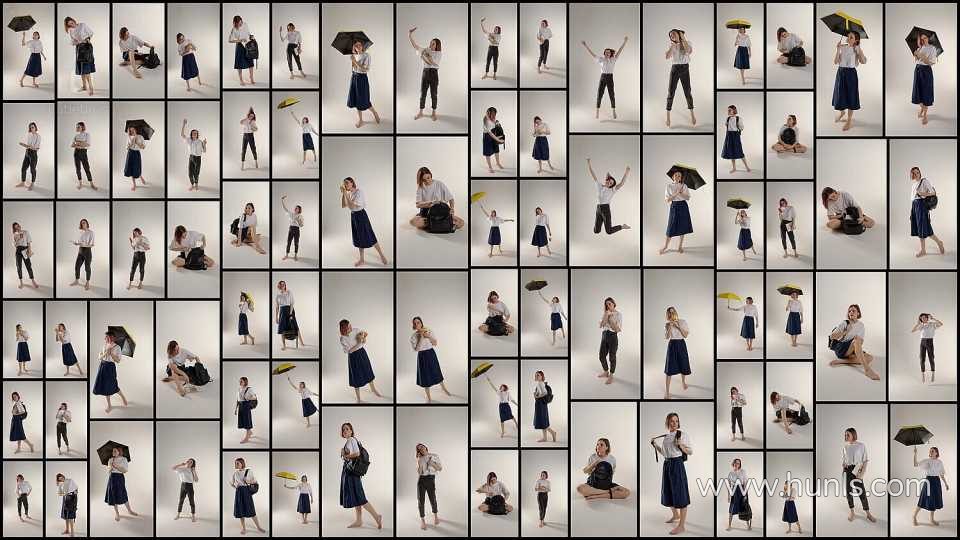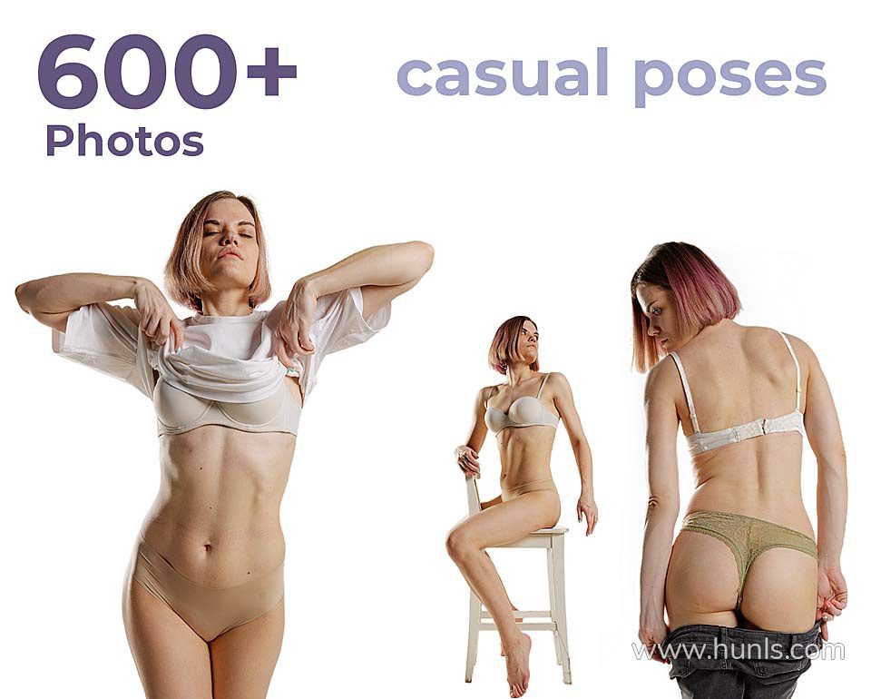 包括616张高分辨率的照片。它的特点是各种不同的休闲姿势,包括换衣服、讲电话、打着伞走路、用笔记本电脑工作、戴着耳机听音乐。这个包适用于:艺术家、雕塑家作为灵感或作为概念艺术的基础。