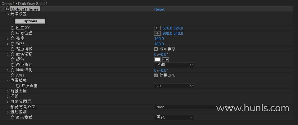 安装后插件位置:效果-VideoCopilot-Optical Flares