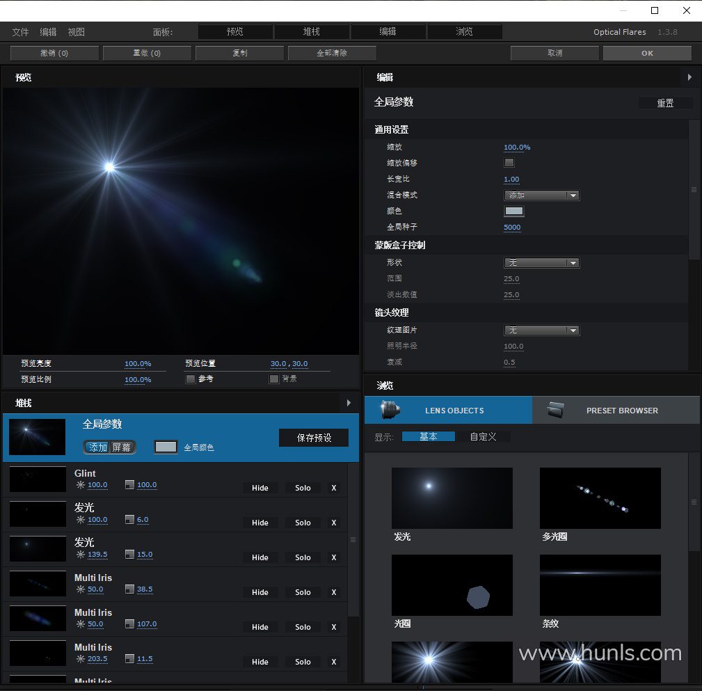 镜头光晕光效耀斑中文汉化AE插件 Optical Flares v1.3.8 Win中文汉化 英文+汉化双版下载