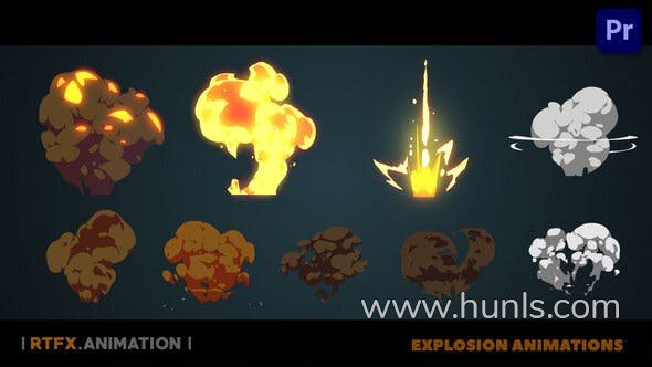 PR模板 - 火焰爆炸烟雾升腾炫酷漫画手绘效果卡通特效 Cartoon Flash 2D FX explosions
