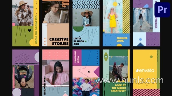 PR模板-现代甜美时尚多彩明亮社交媒体vlog竖屏海报 Colorful Bright Stories for Premiere Pro