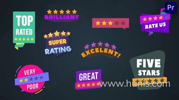 PR模板-五星好评标签满意度服务评价星级评级徽章标题 Five Stars Rating Badges